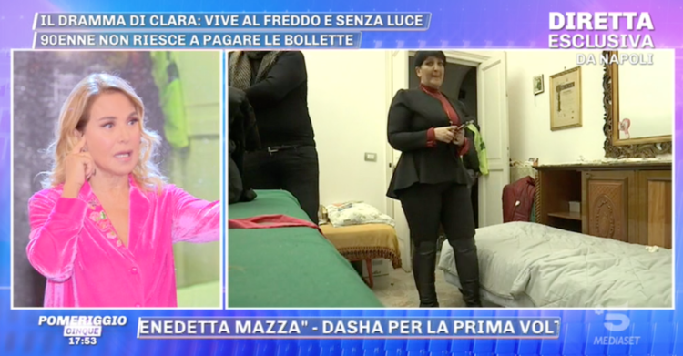 Il blocco poteva iniziare. Barbara D’urso era pronta ad intervistare nonna Clara, signora di 90 anni, dalla faccia simpatica, balzata agli onori della cronaca dopo aver rilasciato una intervista a ‘Il Mattino’ di Napoli, dichiarando di essere rimasta senza luce e senza cibo. In postazione anche Cristina Battista, giornalista inviata dalla trasmissione, la quale, ignara di quello che stava per accadere, era pronta per iniziare l’intervista.